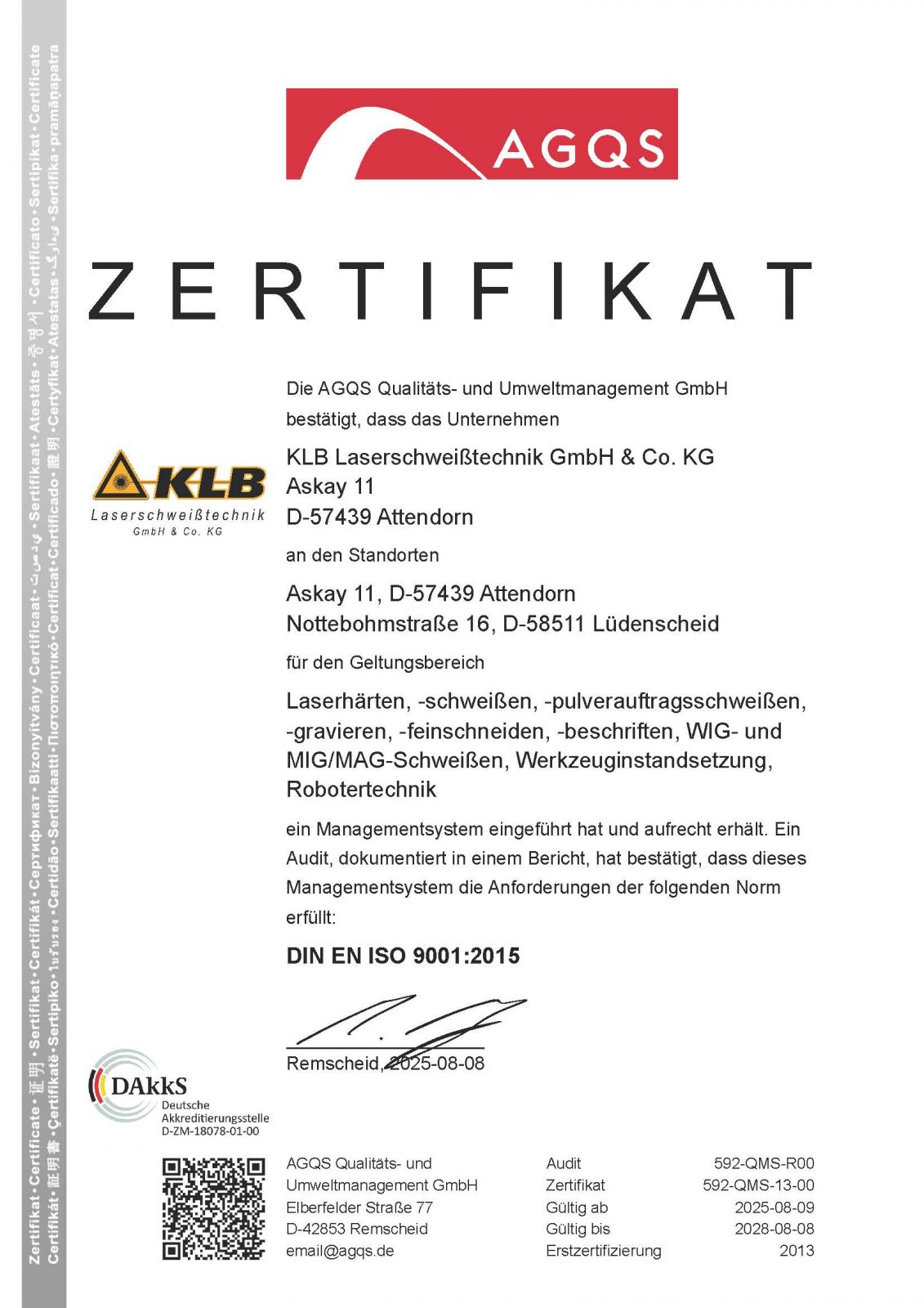 Nous couvrons une grande variété de méthodes de soudage, et une haute qualité constante peut être assurée pour chacune entre elles. Comme les exigences que nous avons envers nous-mêmes, dépassent le niveau habituel, nous avons obtenu la certification DIN EN ISO 9001 :2018, qui est régulièrement surveillée par des audits.